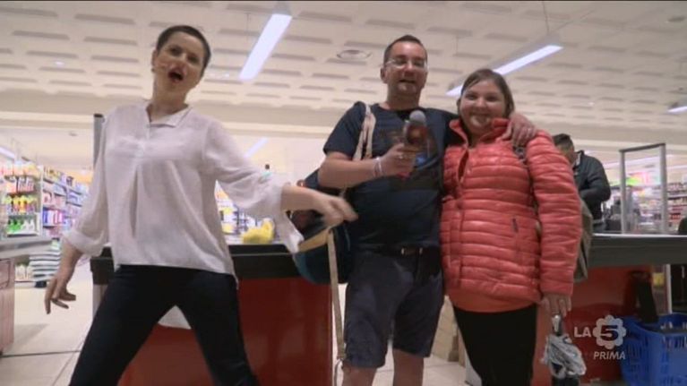 Diversi clienti del supermercato cantano questa canzone insieme a noi
