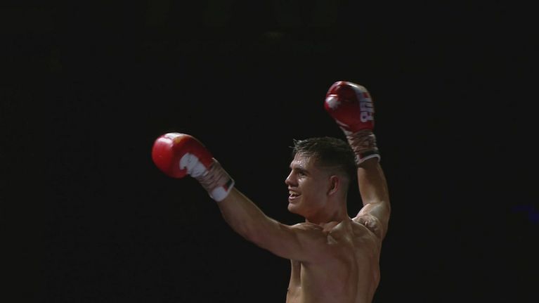I tre rapper, presenti all'Allianz Cloud per sostenere il loro amico, esultano e celebrano la vittoria del campione italiano dei pesi superpiuma.