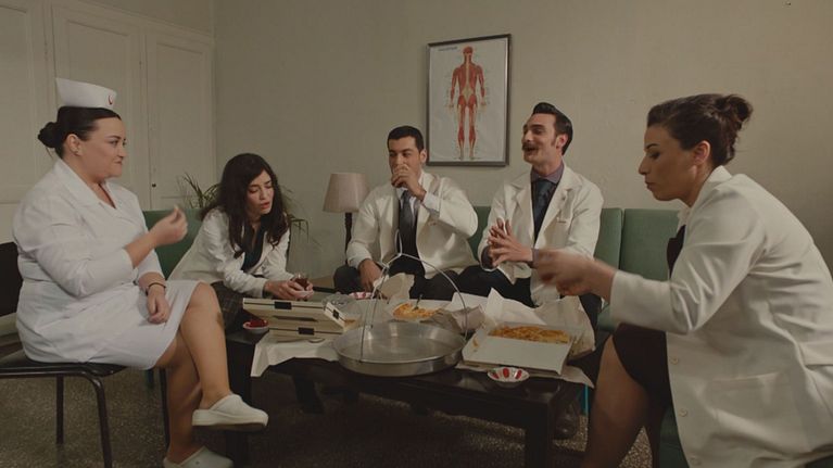 La dottoressa Mujgan fa una pausa in compagnia degli altri medici.