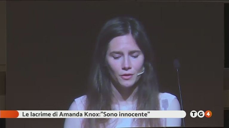 Amanda Knox in lacrime durante il suo intervento al Festival della giustizia penale a Modena