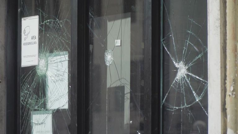 Cartelli divelti, mura imbrattate, vetrine infrante e cassonetti in fiamme