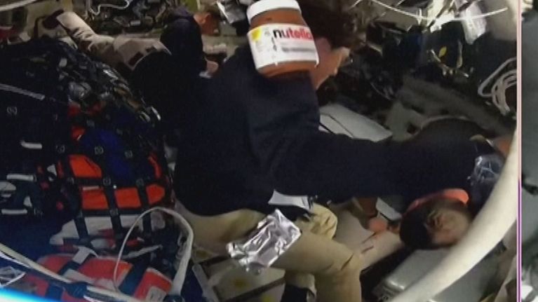 Gli astronauti sulla via del ritorno, il barattolo galleggia con loro