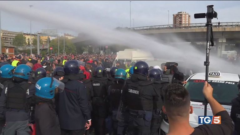Tensione al porto di Trieste con cariche, idranti e lacrimogeni la polizia sgombera il presidio dei no green pass