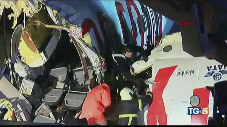 Aereo turco atterra, si spezza e prende fuoco