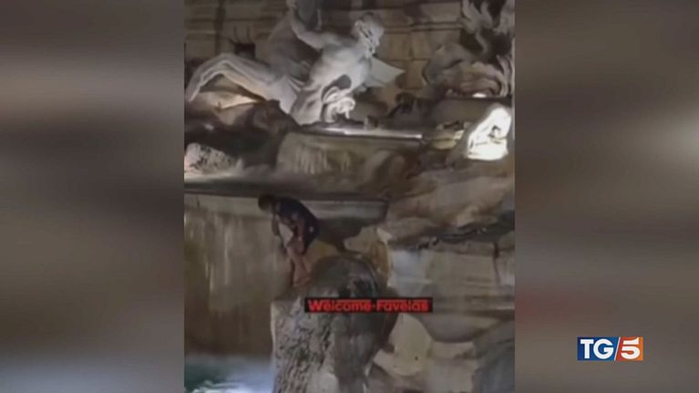 Si arrampica sulla Fontana di Trevi e si tuffa tra gli applausi dei turisti
