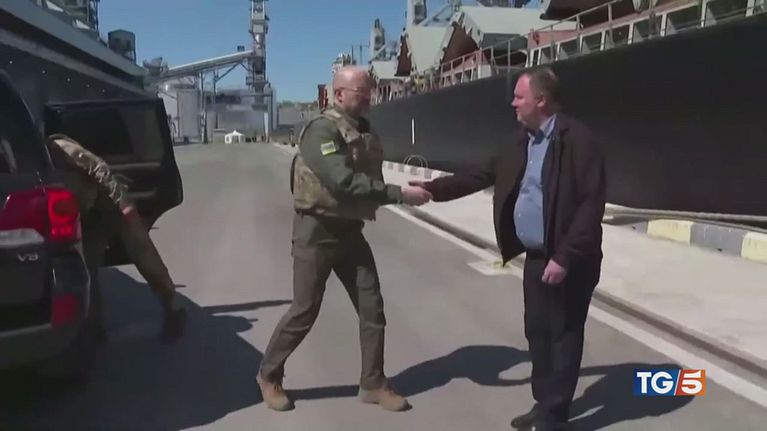 Attacco missilistico russo durante la visita del presidente del Consiglio Europeo costretto a ripararsi in un rifugio