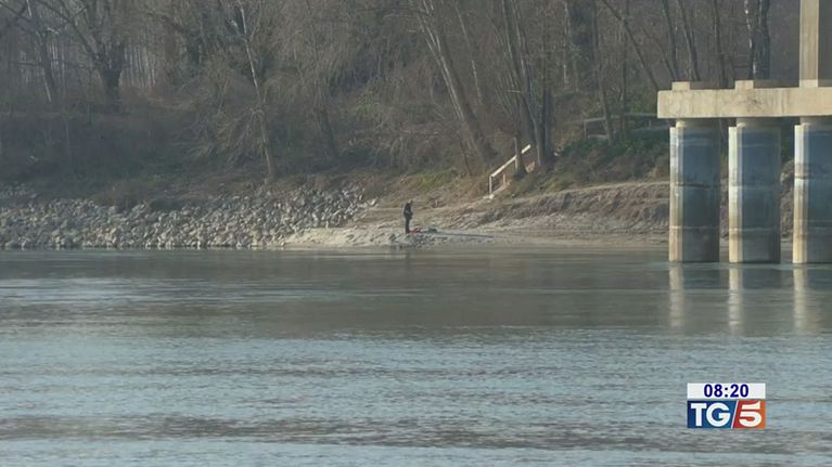Borsone con cadavere affiora nel Po in secca