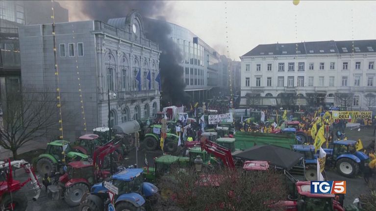 Bruxelles assediata dagli agricoltori giunti da tutta Europa: migliaia di trattori in marcia, roghi e lanci di bottiglie.