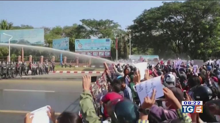 Cannoni ad acqua sui manifestanti