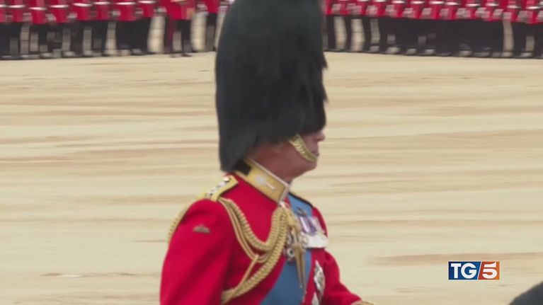Re Carlo e il principe William sfilano a cavallo per la tradizionale parata del Trooping the color.
