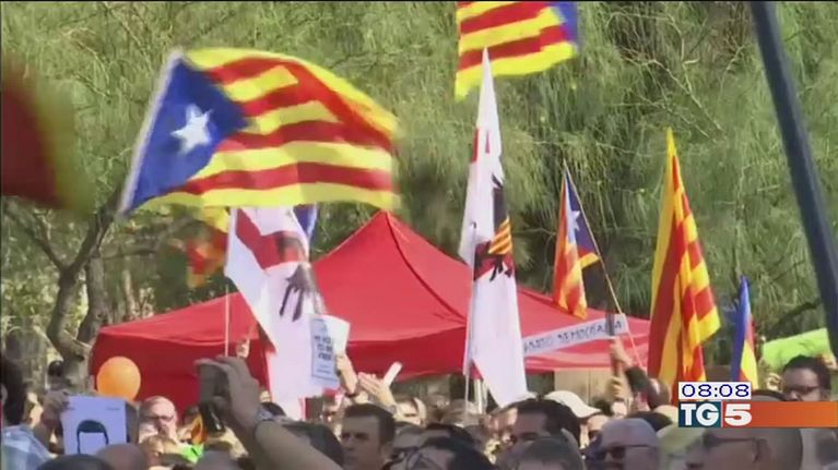 Migliaia di persone manifestano per l'indipendenza catalana.