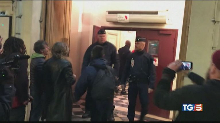 Tensione, scontri e slogan contro il governo all'esterno di un teatro di Parigi dove si trovavano Macron e la moglie.