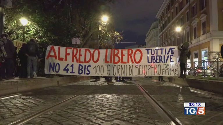 Gli anarchici tornano a chiedere la liberazione del detenuto nel carcere di Sassari, da oltre 100 giorni in sciopero della fame.