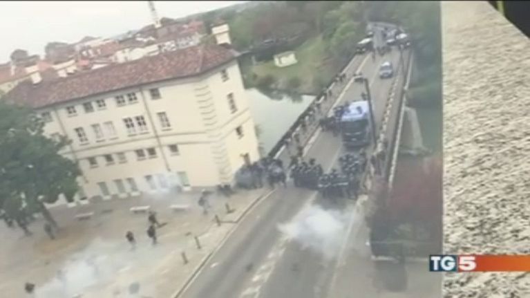 Duri scontri a Torino, il corteo di protesta tenta di forzare il blocco per raggiungere la sede sel summit.