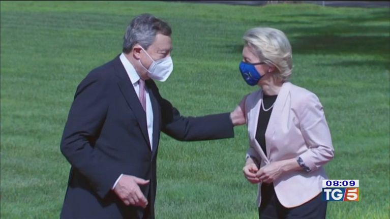 Ursula Von Der Lyen a Roma incontra il premier Draghi per il via libera al piano di rilancio.