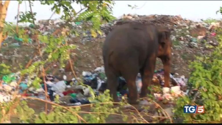 Sri Lanka le avvilenti immagini di elefanti costretti a cercare il cibo tra i rifiuti di una discarica.