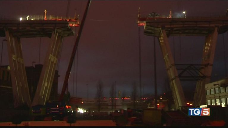 Terminata poco fa la prima fase della demolizione del Ponte Morandi: portato a terra un segmento pesante 800 tonnellate