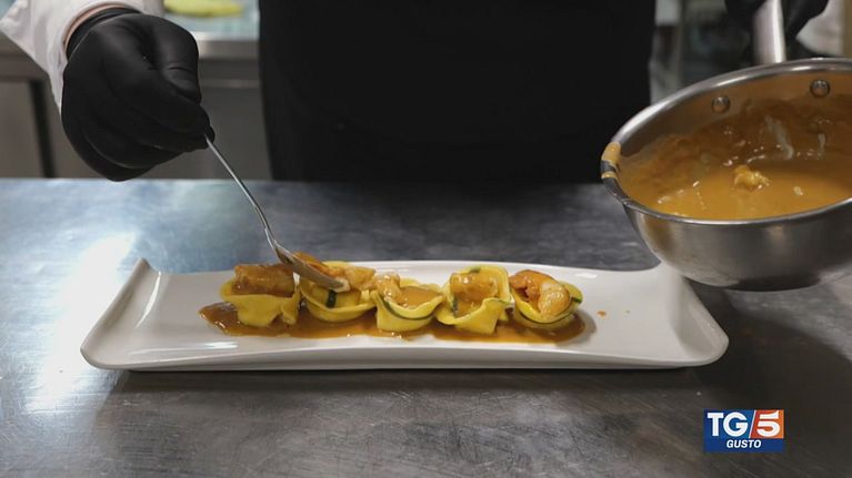 Gusto: tortelli di ricotta e tartufo bianchetto agli scampi