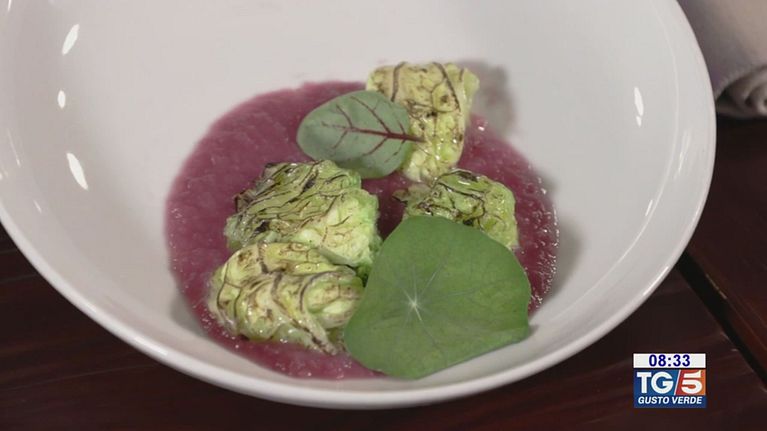 Gusto Verde: gnocco di verza con formaggio di capra e crema di cipolla caramellata