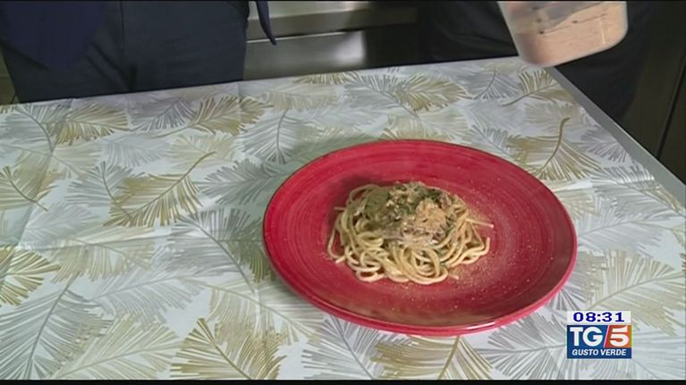 Direttamente da Vietri, all'inizio della costiera amalfitana, uno spaghettino veloce con un pesto tradizionale.