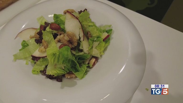 Una fresca insalata con mela annurca, frutta secca e formaggio