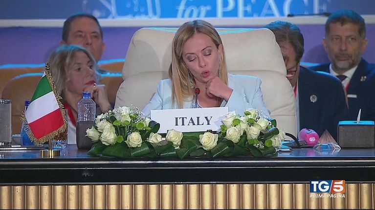 Alla Conferenza per la pace nel Cairo Giorgia Meloni condanna Hamas.