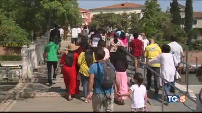 Turisti e non solo alle prese con la novità per regolamentare i turisti a Venezia