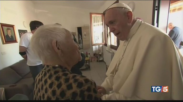 Papa Francesco a Camerino, nelle Marche, visita le popolazioni colpite dal terremoto di tre anni fa.