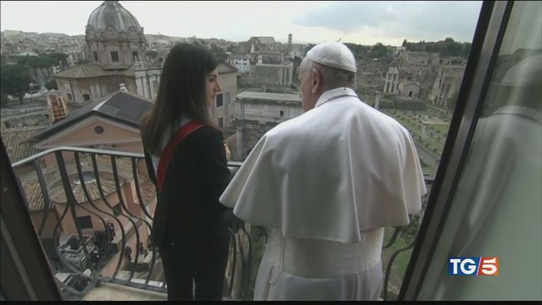 Il saluto alla città di Roma affianco alla Sindaca Raggi: "Splendore non si degradi, la città sia maestra di accoglienza".
