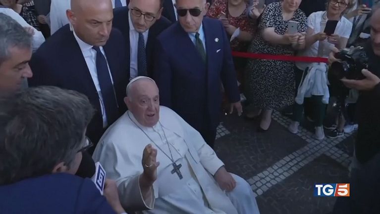 Folla e applausi per Papa Francesco che ha lasciato il policlinico Gemelli dopo l'intervento all'addome.
