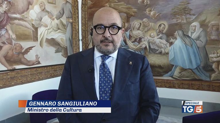 Il Ministro della Cultura Gennaro Sangiuliano spende alcune parole per salutare Silvio Berlusconi.