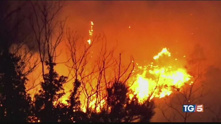 Un violento incendio è divampato sulle colline del capoluogo ligure, Toti: "temo gesto doloso".