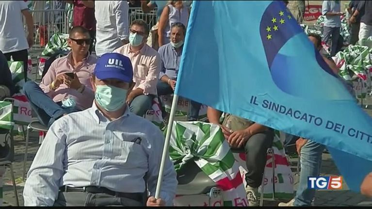 CGIL, CISL e UIL in piazza a Roma, Milano e Napoli: "Ripartire dal lavoro".