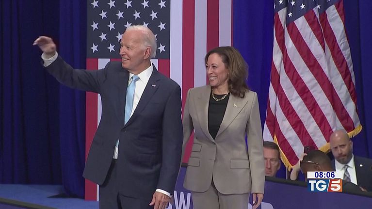 Prima volta insieme sul palco per Joe Biden e Kamala Harris.