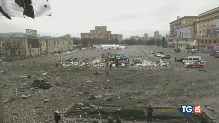 Città ucraine sotto attacco, missili su Kharkiv e Mariupol. Una colonna di mezzi militari lunga 60km a pochi chilometri da Kiev.