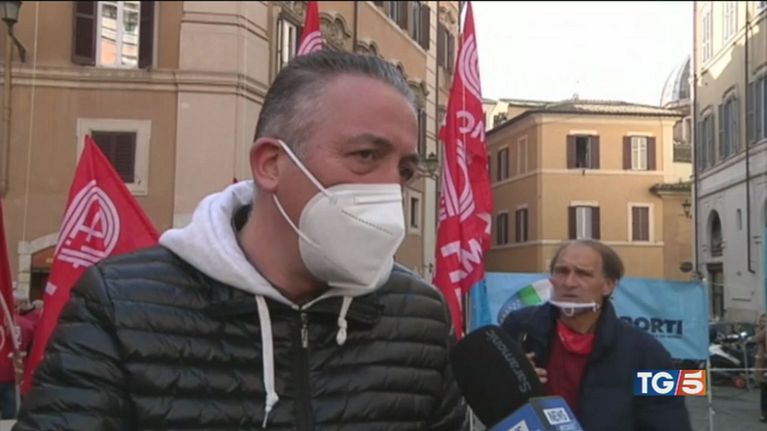 40mila posti di lavoro a rischio. Lavoratori in piazza a Montecitorio per chiedere la proroga sul blocco dei licenziamenti.