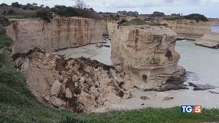 Il maltempo fa sbriciolare in mare l'Arco dell'amore di Melendugno, simbolo del Salento.