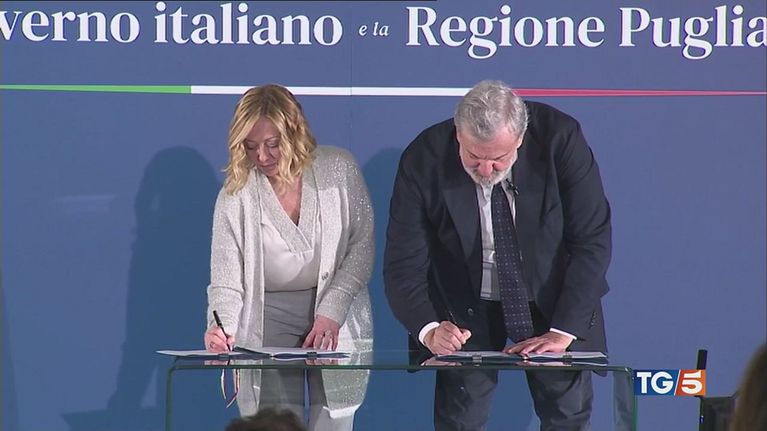 Giorgia Meloni a Bari per l'accordo di coesione da 6 miliardi con la Puglia