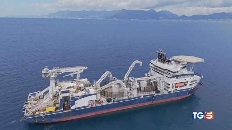 Completata la posa del primo cavo sottomarino per la trasmissione della energia elettrica da Sicilia e Sardegna all'Italia continentale.
