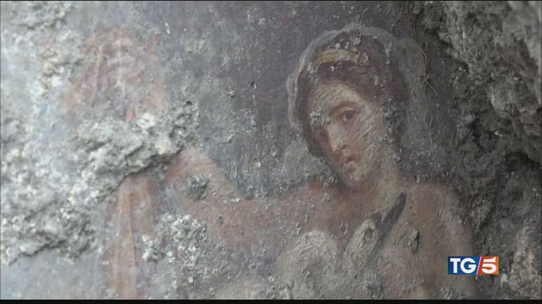 Eccezionale scoperta nel sito archeologico campano: riaffiora un affresco raffigurante la regina di Sparta.