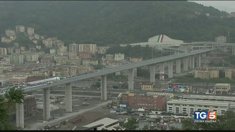 Sotto la pioggia l'inno, i nomi delle 43 vittime del crollo, le frecce tricolori, l'abbraccio di un arcobaleno