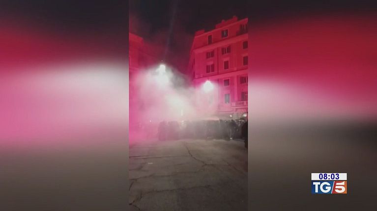 Lancio di bombe carta e fumogeni contro le camionette della polizia. Otto poliziotti feriti negli scontri