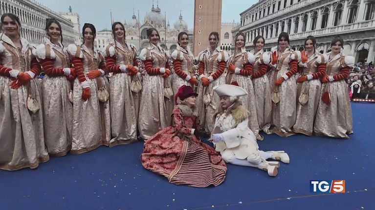 A Venezia migliaia di turisti per lo spettacolo del carnevale.