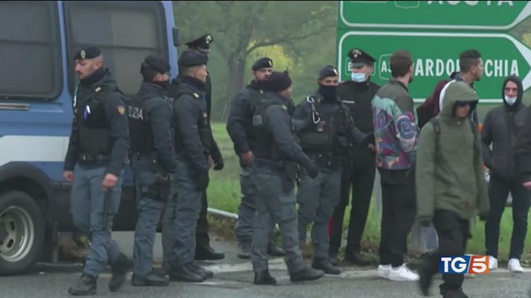 Più di 4mila le persone radunate in un capannone dismesso alle porte di Torino. Agenti feriti.
