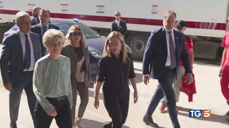 La premier Meloni a Lampedusa insieme alla presidente Ursula Von Der Leyen: "Agire insieme per fermare le partenze illegali".