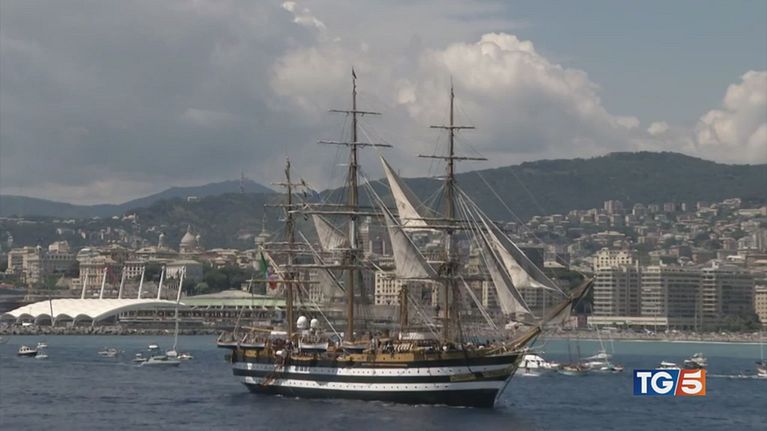 L'Amerigo Vespucci è salpata dal porto di Genova per il giro del mondo.