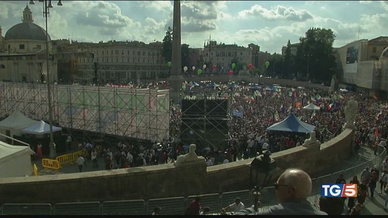 Folla a Piazza del Popolo per la manifestazione del Partito Democratico contro il governo