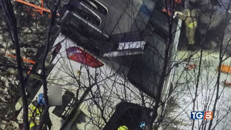 Spaventoso incidente stradale: un bus con 58 persone a bordo perde il controllo e cade in un lago.
