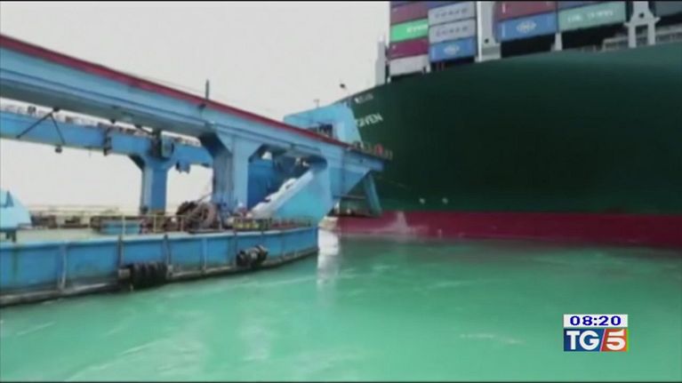 La gigantesca nave porta conteiner è incagliata da 5 giorni
