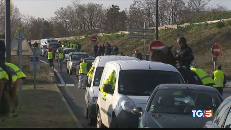 I giubbini gialli scendono in piazza contro il rincaro delcarburante.